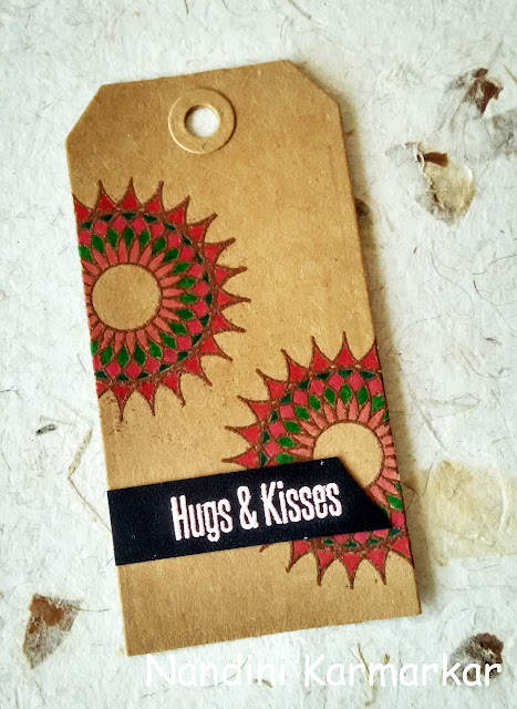 I made a set of tags for this challenge using the very first stamp set designed by me. It is called Geometrical Patterns and is available through Craftyscrappers. I also used the sentiment from another set also designed by me called Doodly Blooms.